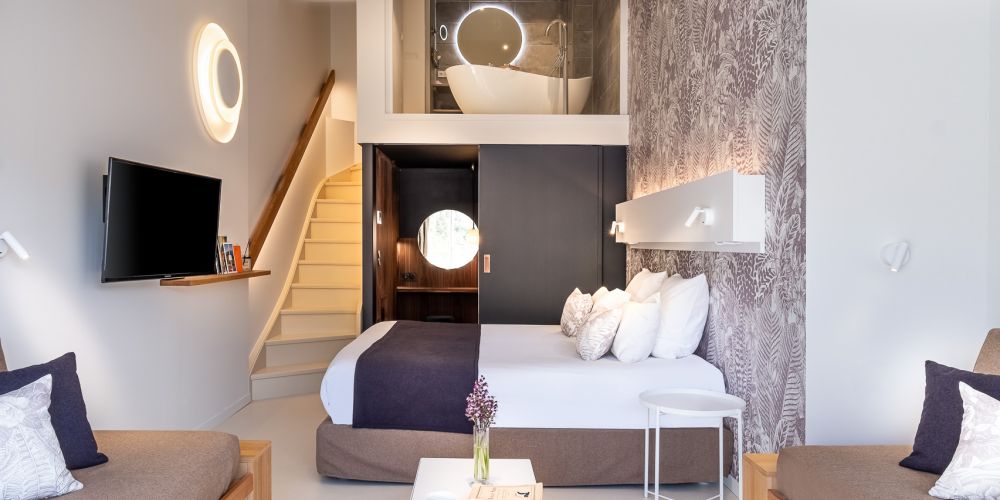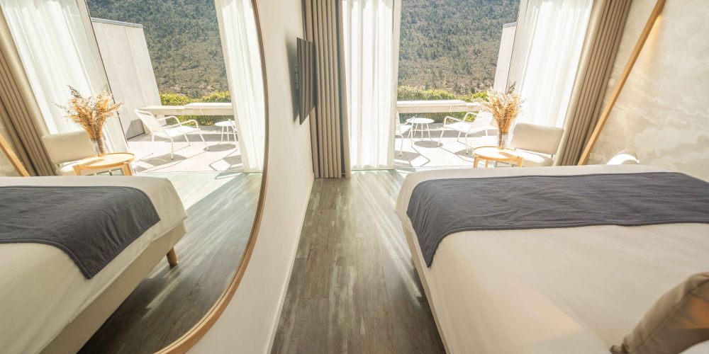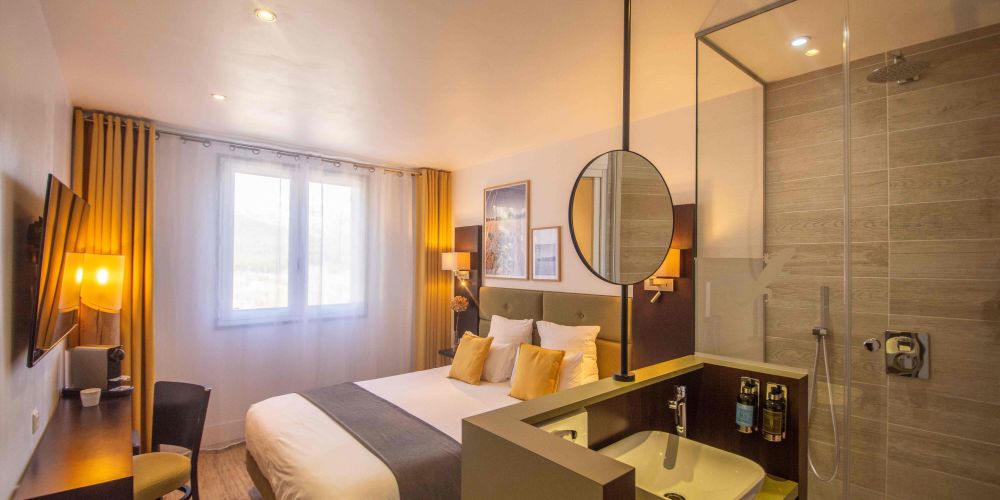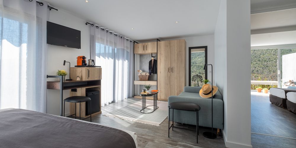 Die Farben erhellen die Zimmer, um sich angesichts einer herrlichen Landschaft fröhlich zu entfalten. Die Zimmer sind mit Balkon oder Terrasse ausgestattet, damit Sie die Natur und die friedliche Hotelumgebung voll und ganz genießen können.